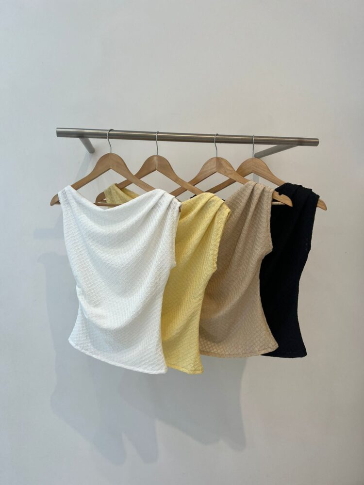 Blusa de crepe texturizado. Tramado super veraniego. Blusa irregular. Tabla en un hombro y tabla lateral que te marca la silueta. Ideal para el verano.