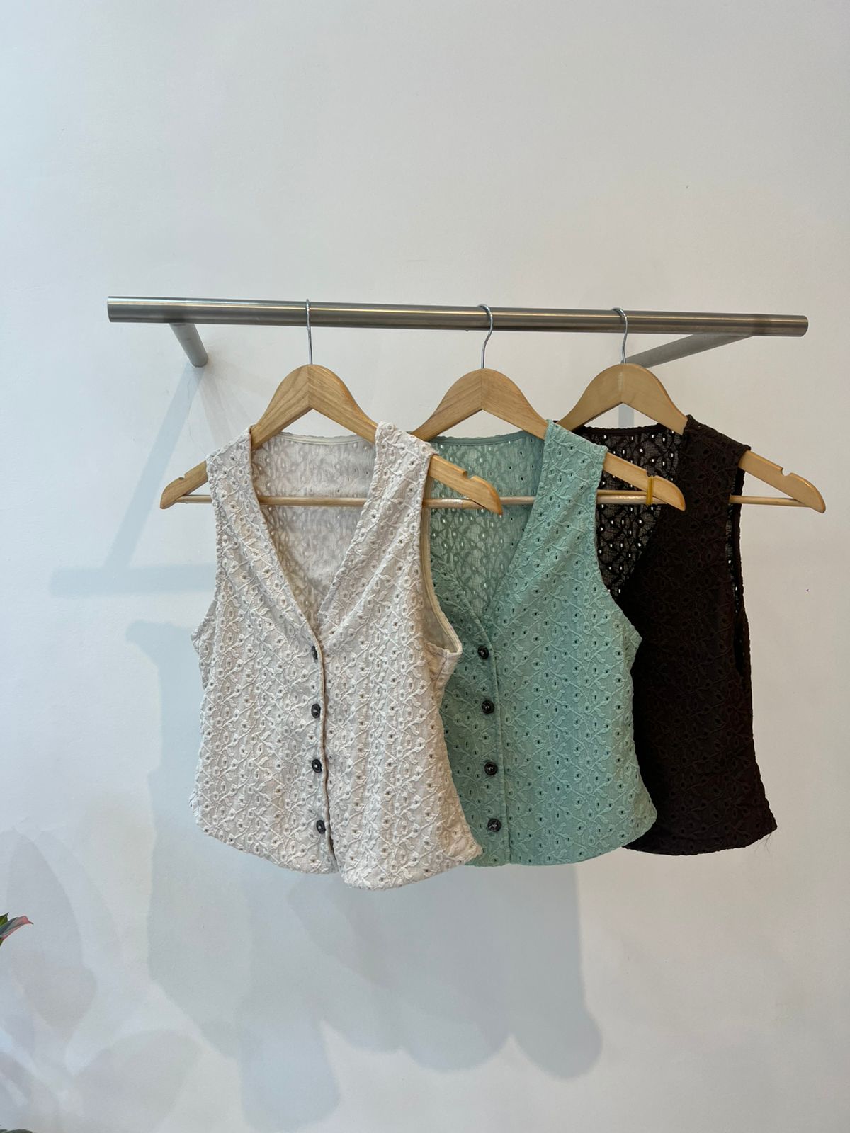 Chaleco de broderie de punto. Con forro de modal soft. Super canchero. Ideal para el verano. Combina con el Pantalón Lecce.