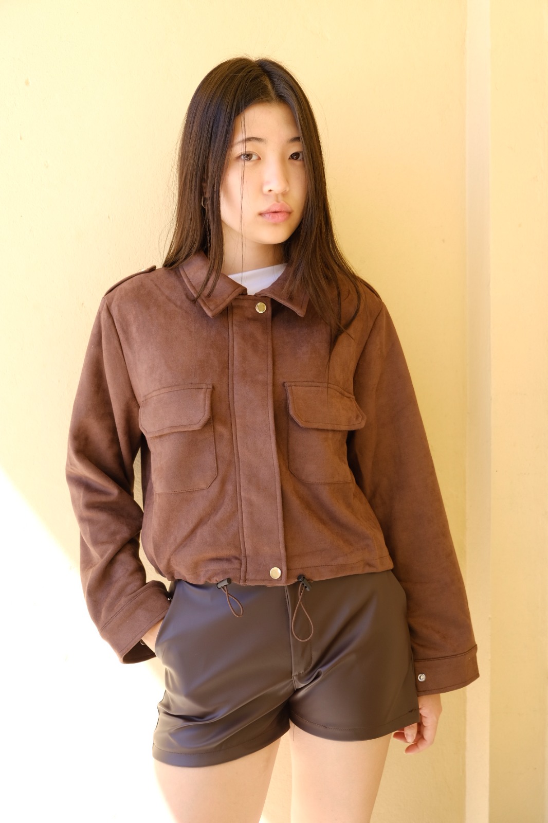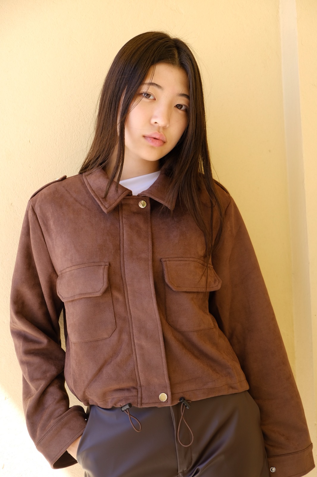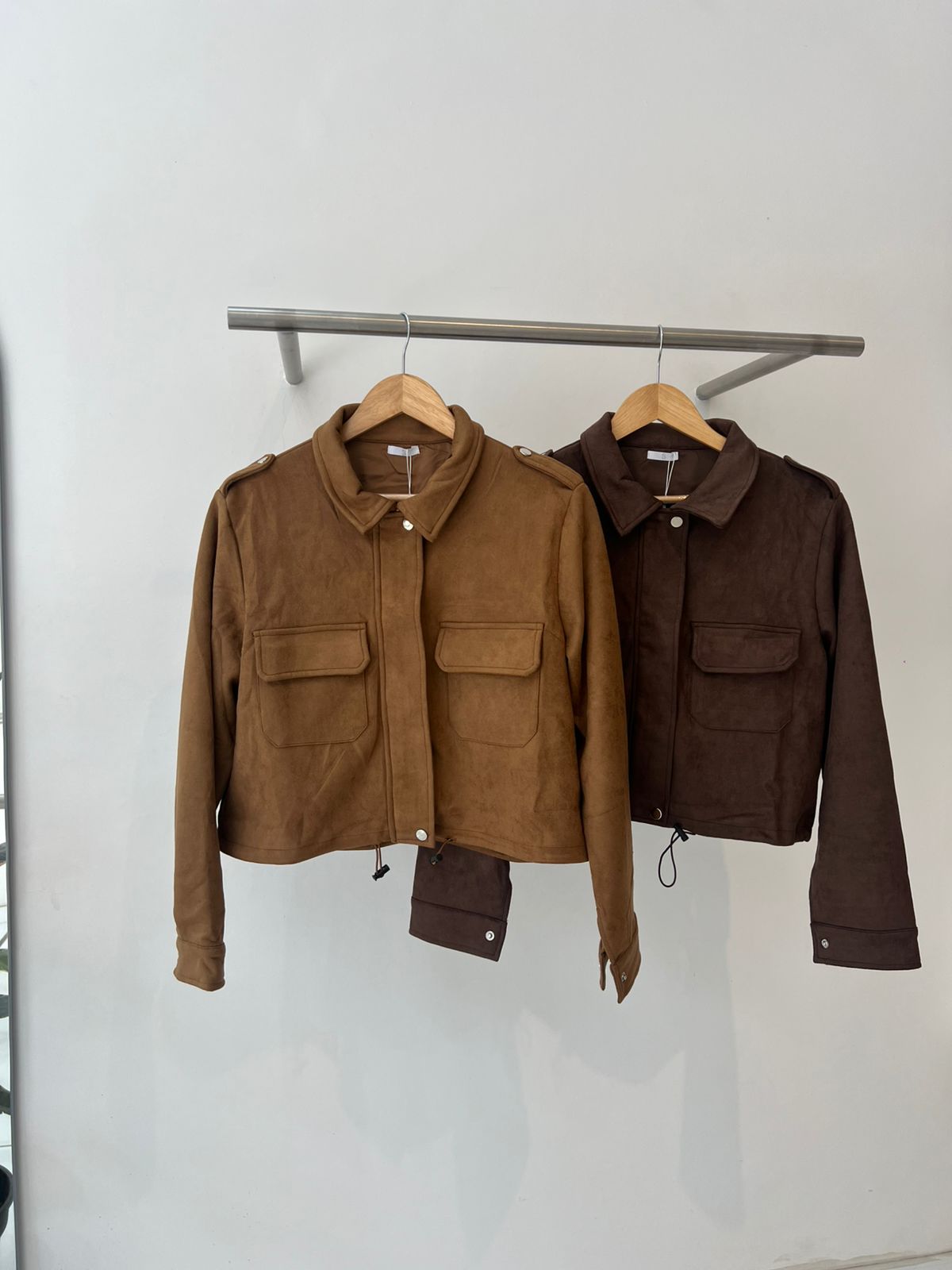 Chaqueta de gamuza. Con cierre. Con botones. Con bolsillos frontales. Con elástico en la cintura.