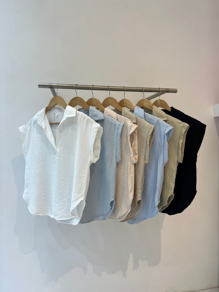 Chomba de lino madrileño. Con cuello. Sin mangas. Silueta holgada. Tajo lateral. Detalles en las mangas. Super canchero y fresco. Ideal para usar con nuestro Pantalón Cala