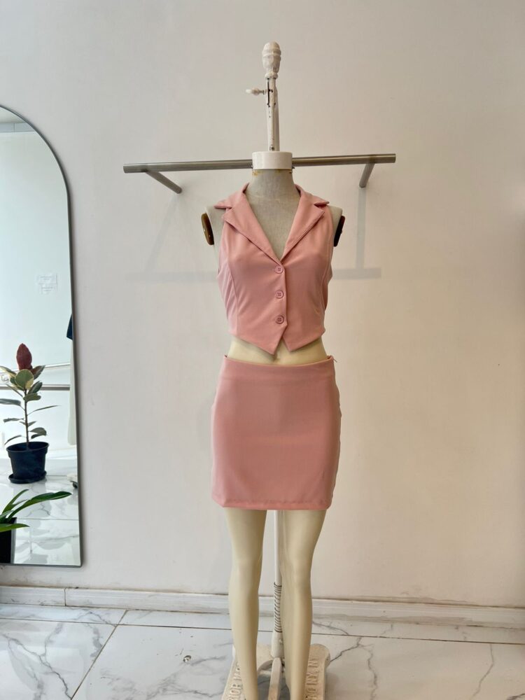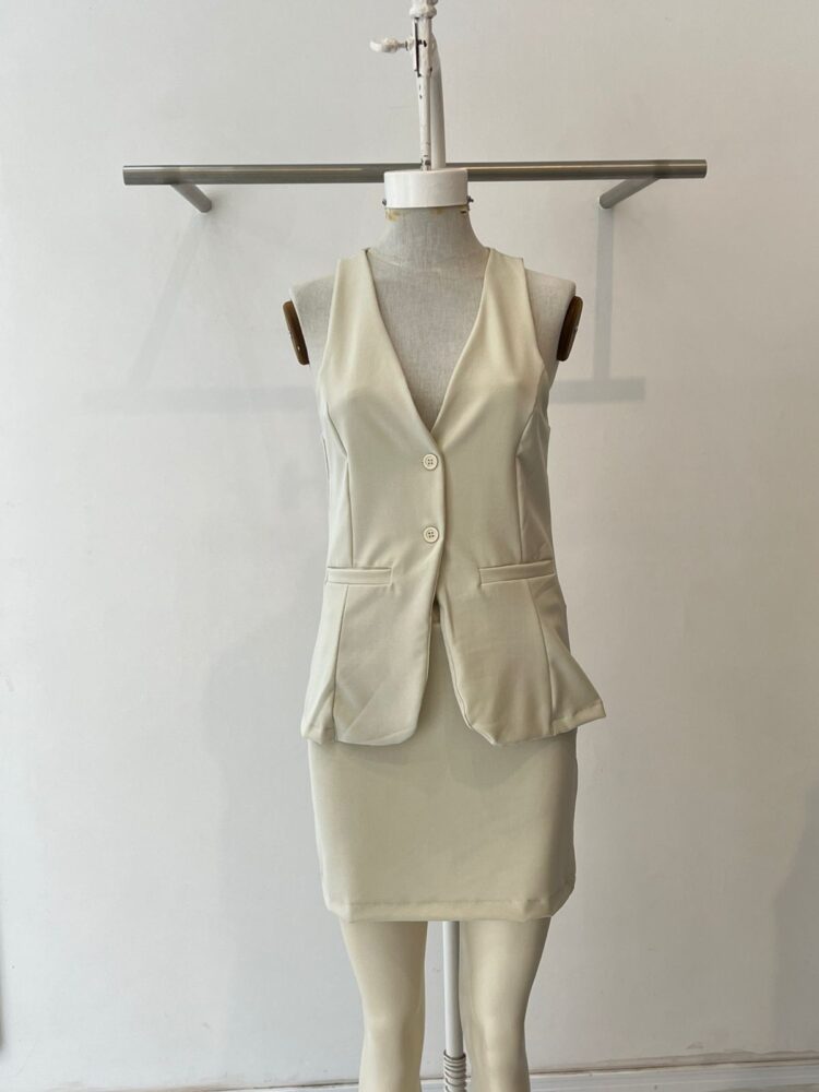 Mini sastrera. Con pinzas traseras. Cierre al costado.
