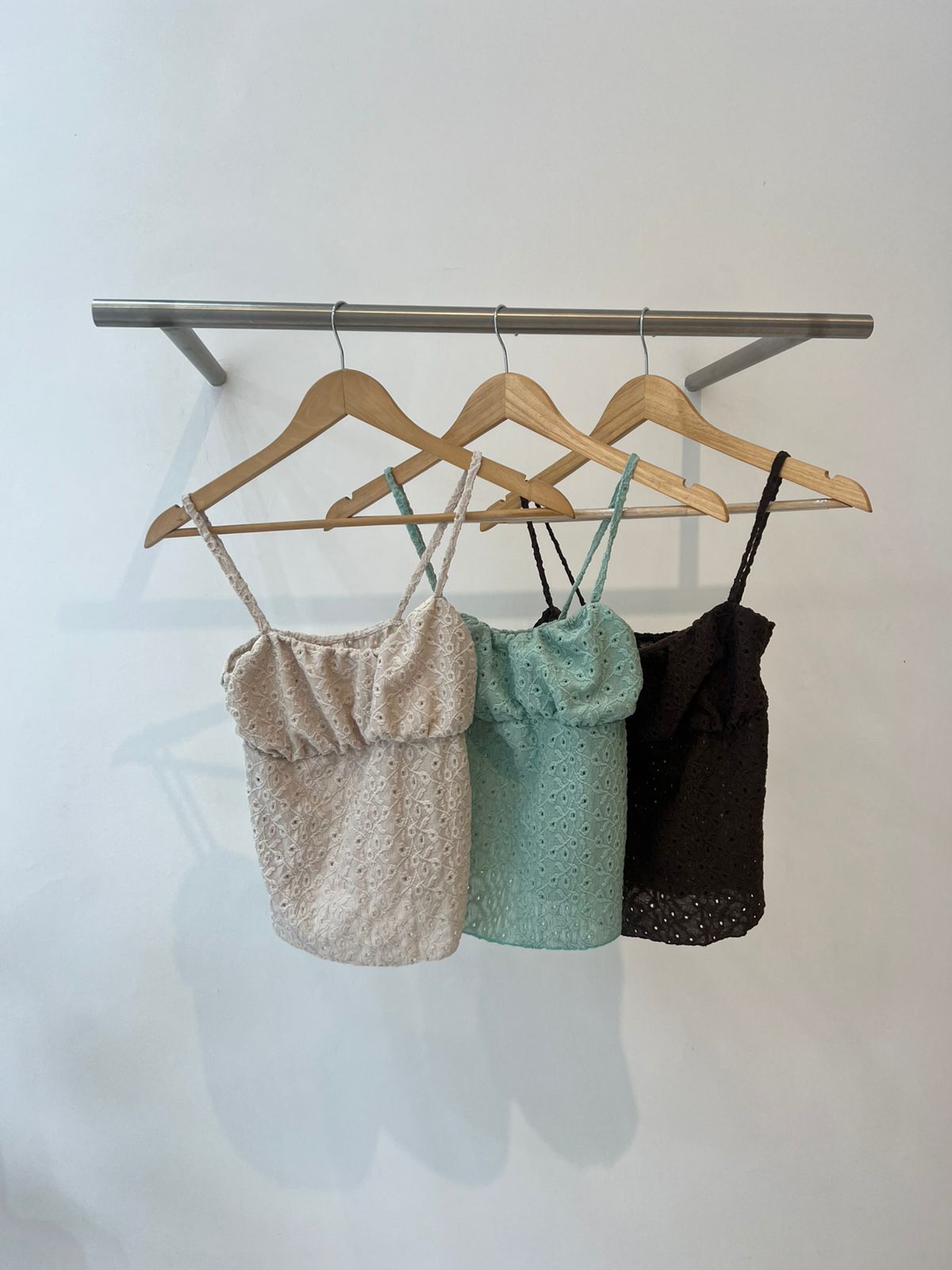 Musculosa de broderie de punto. De tiritas. Con forro interior de modal en la zona del busto. Detalles en la parte del busto. Super cómodo y canchero. Ideal para combinar con nuestro Pantalón Lecce.