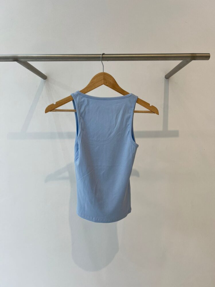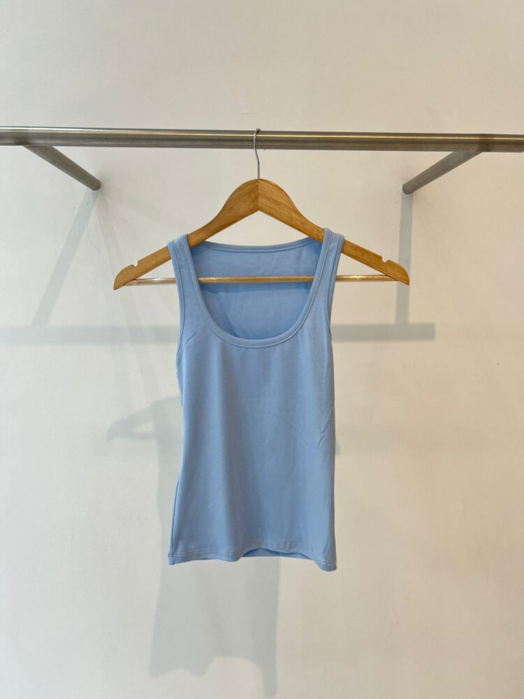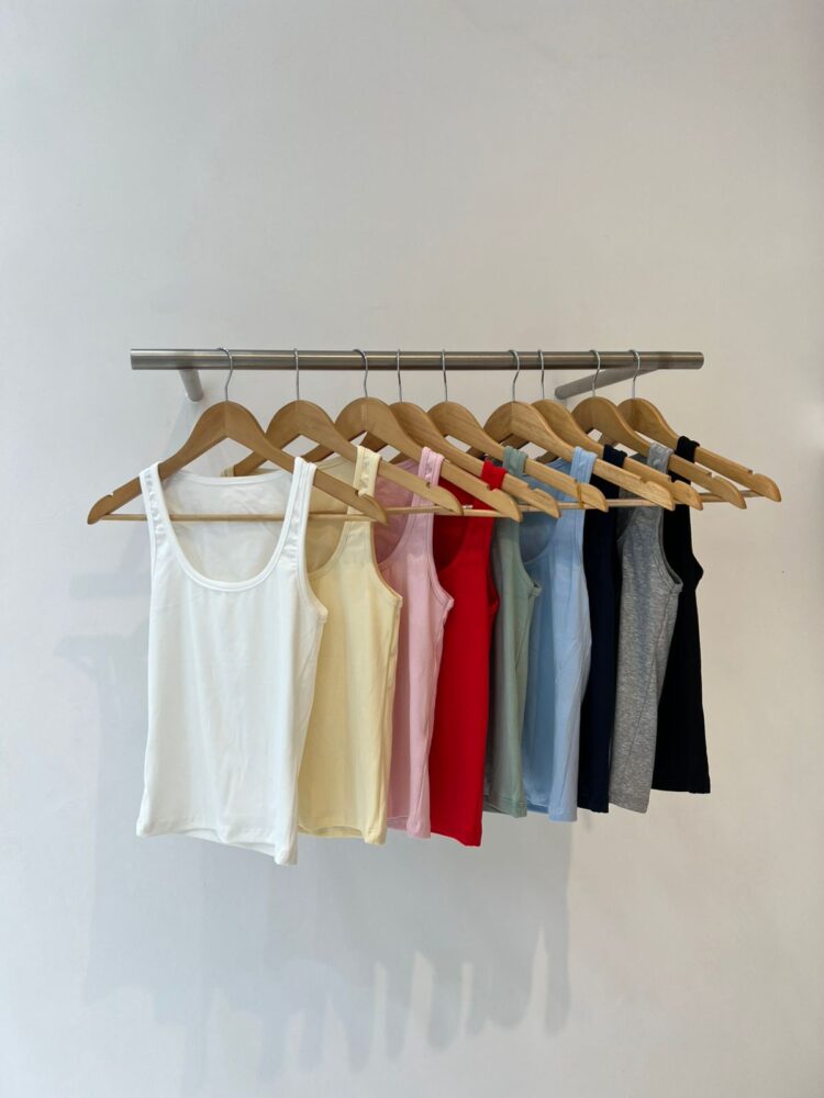 Musculosa de morley ribb. Cuello U. Espalda cerrada. Silueta super en tendencia. Fresco y canchero.