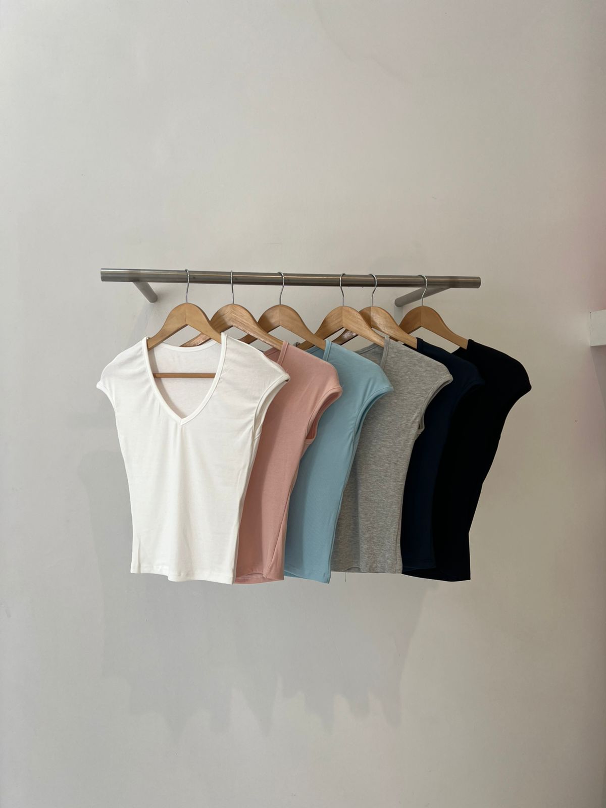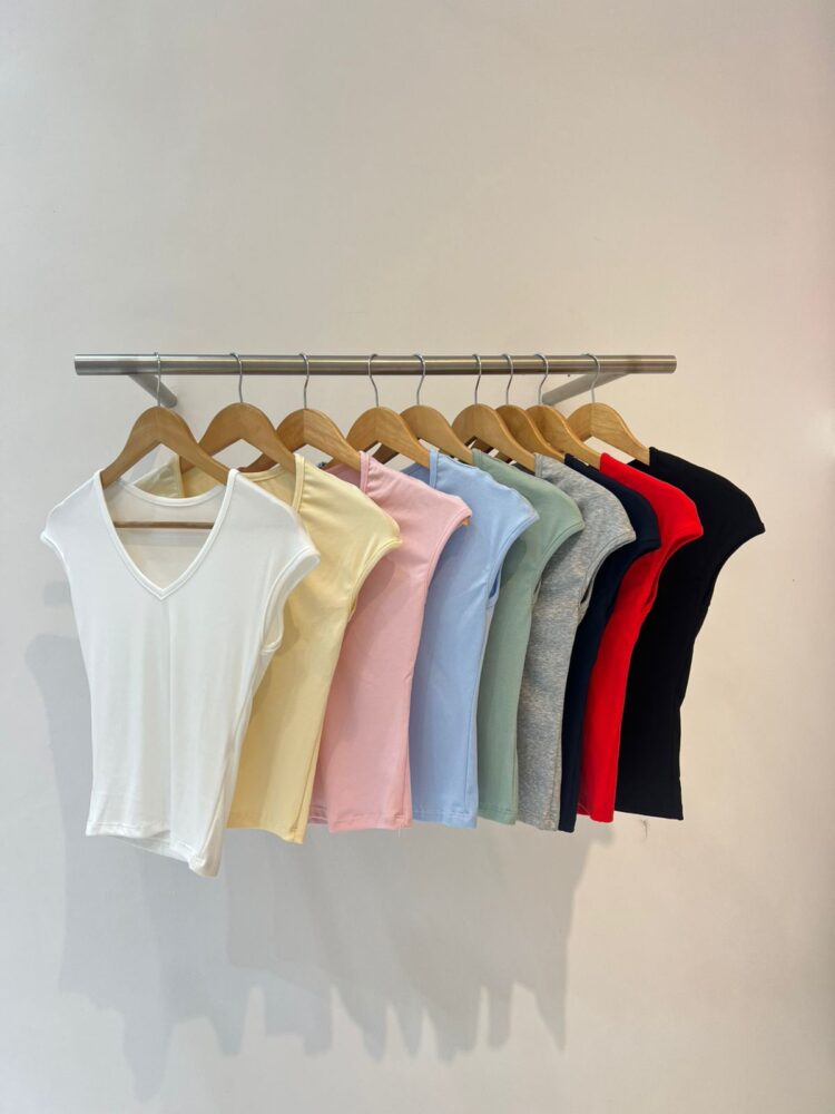 Remera básica. Mangas cortas. Cuello V. Silueta entallada. Cómoda. Básico de calidad infaltable para esta temporada. Ideal para el verano.